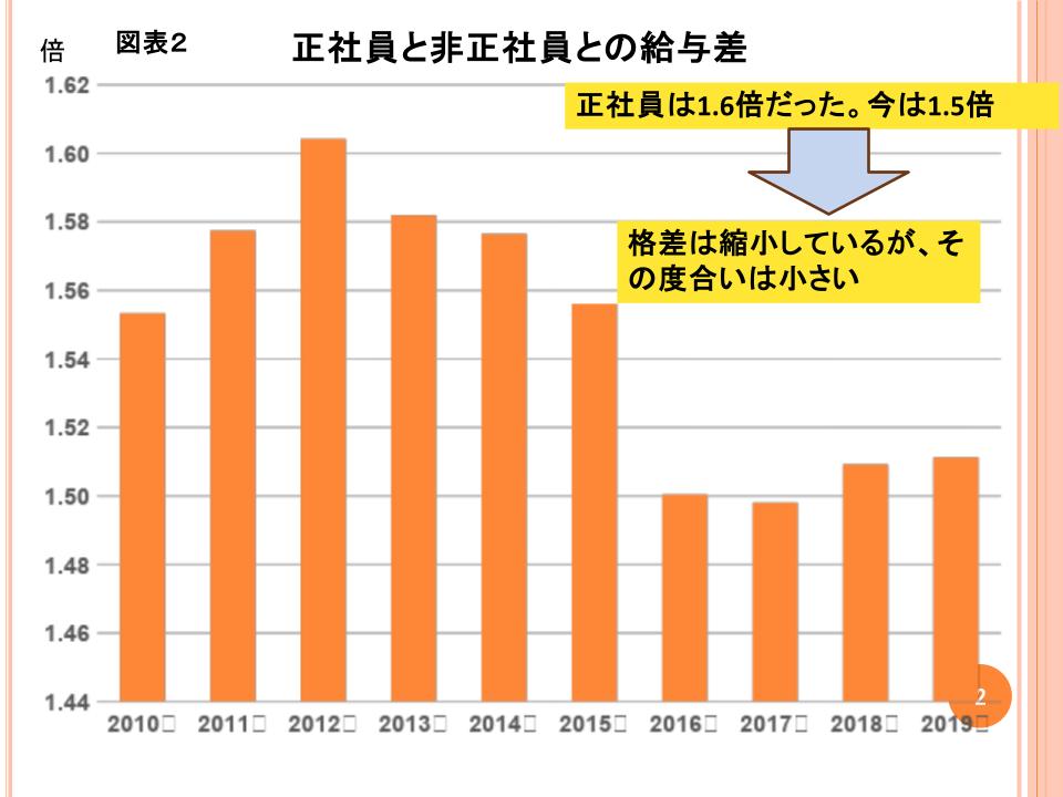 2020年に同一労働同一賃金が高々と掲げられましたが、その後も格差はあまり縮まっていません。