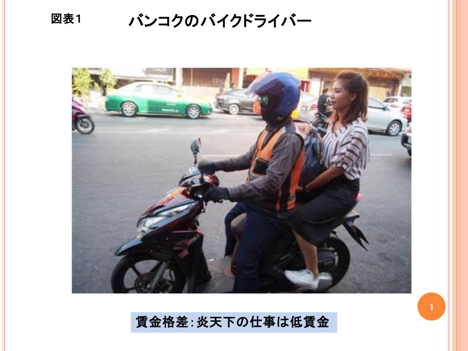 図表1 にあるように、典型例が バイクタクシー運転手 です。ほぼ男性です。