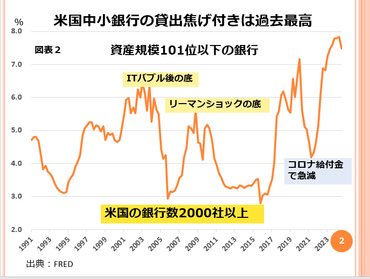 これを示したのが図表2です。図表2は、中小銀行の焦げ付き率です。