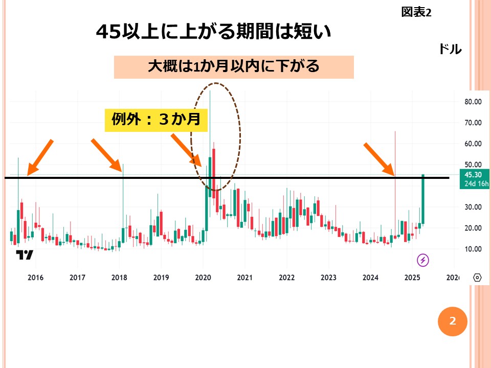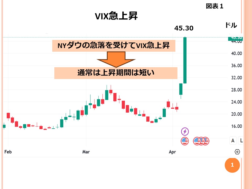 4月4日、VIXは45.30ドルの高値をつけて引けました。図表1です。