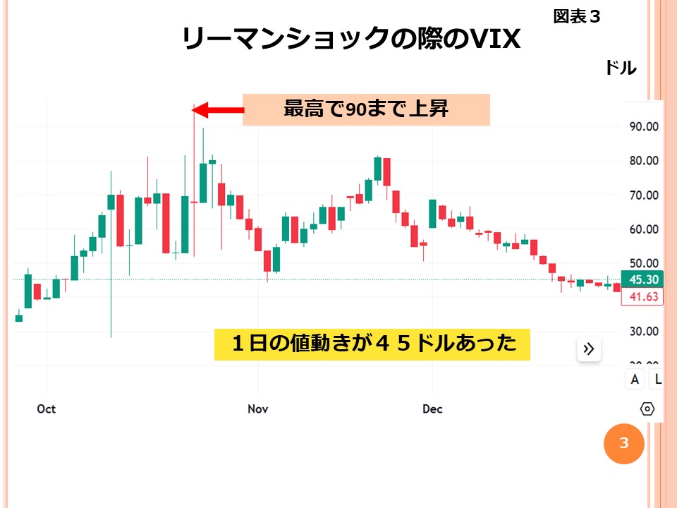 2008年のリーマン・ショックの際はVIXが90ドルまで進んでしまいました。