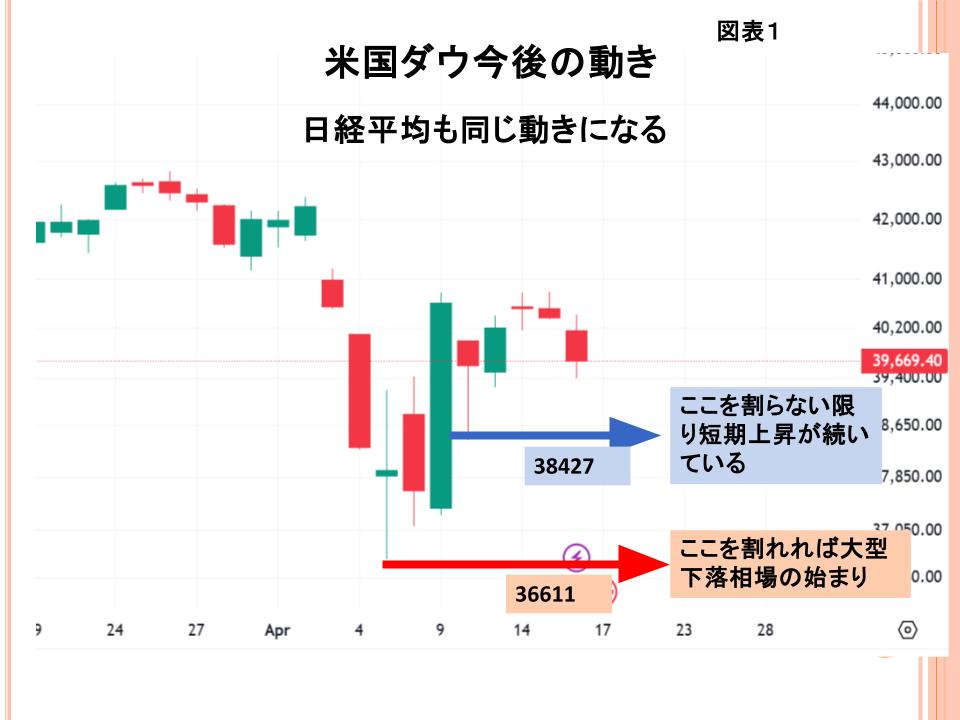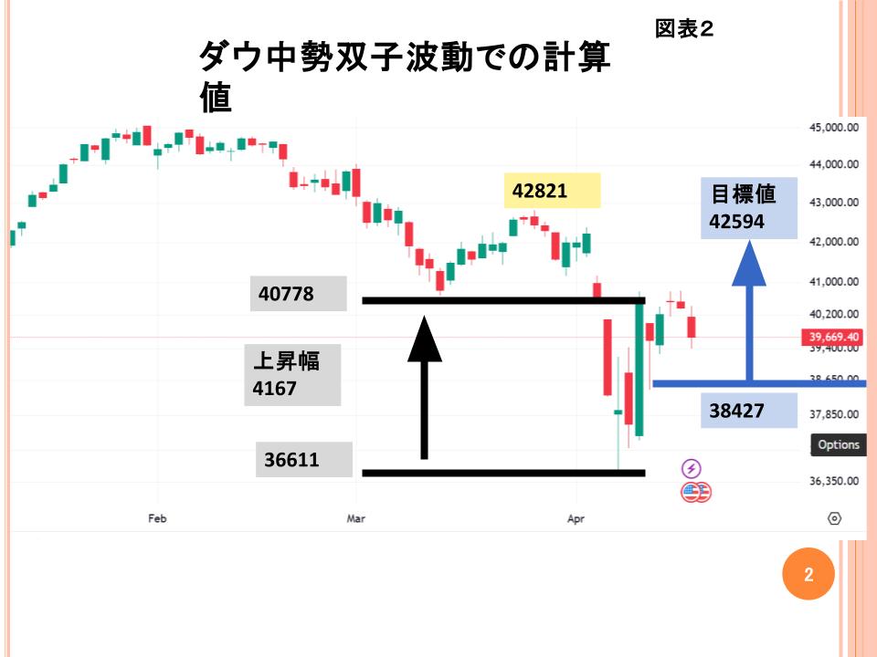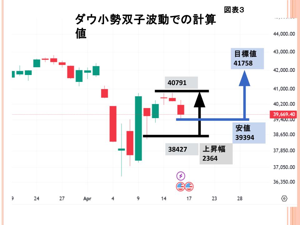 図表3での目標値41,758ドルの間でダウが天井を打つという考え方です。