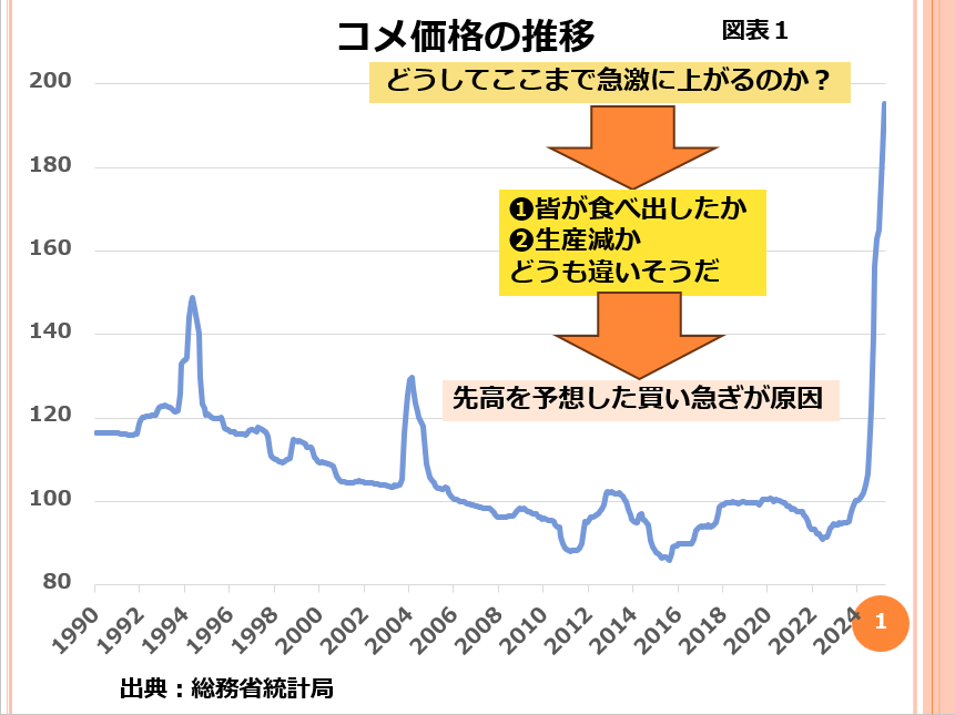 だから早めに買っておこう」という心理から米価格が上がっているのです。
