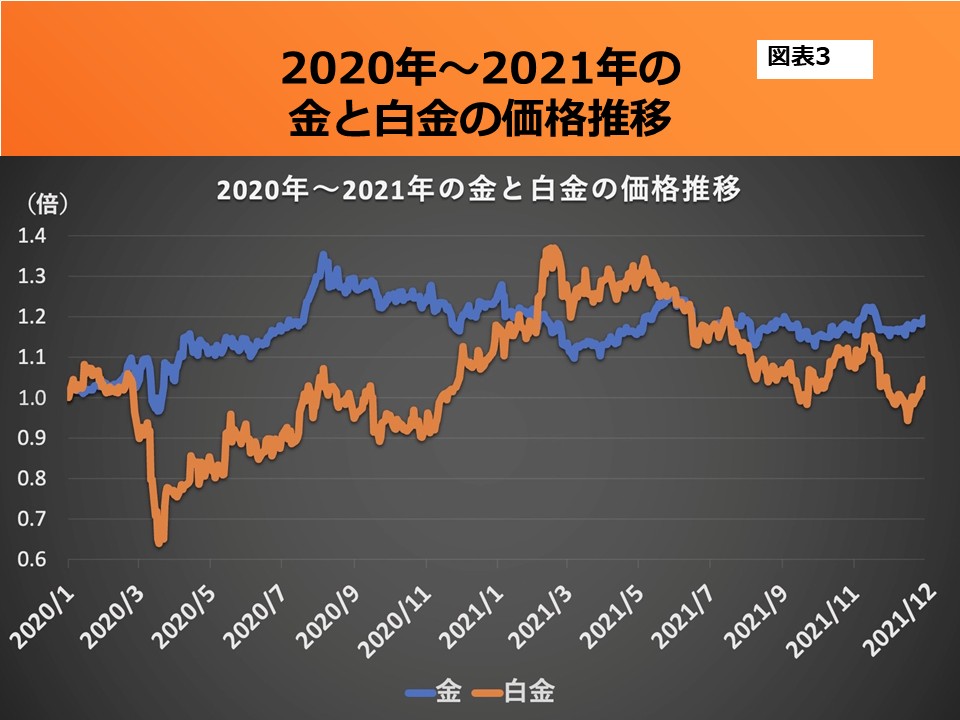 しかし、図表2で長期の価格推移を見た後では、こうした上昇が短期のものであったことは既にお分かりのはずです。プラチナの上昇は下がり過ぎたあとによく起こる現象です。