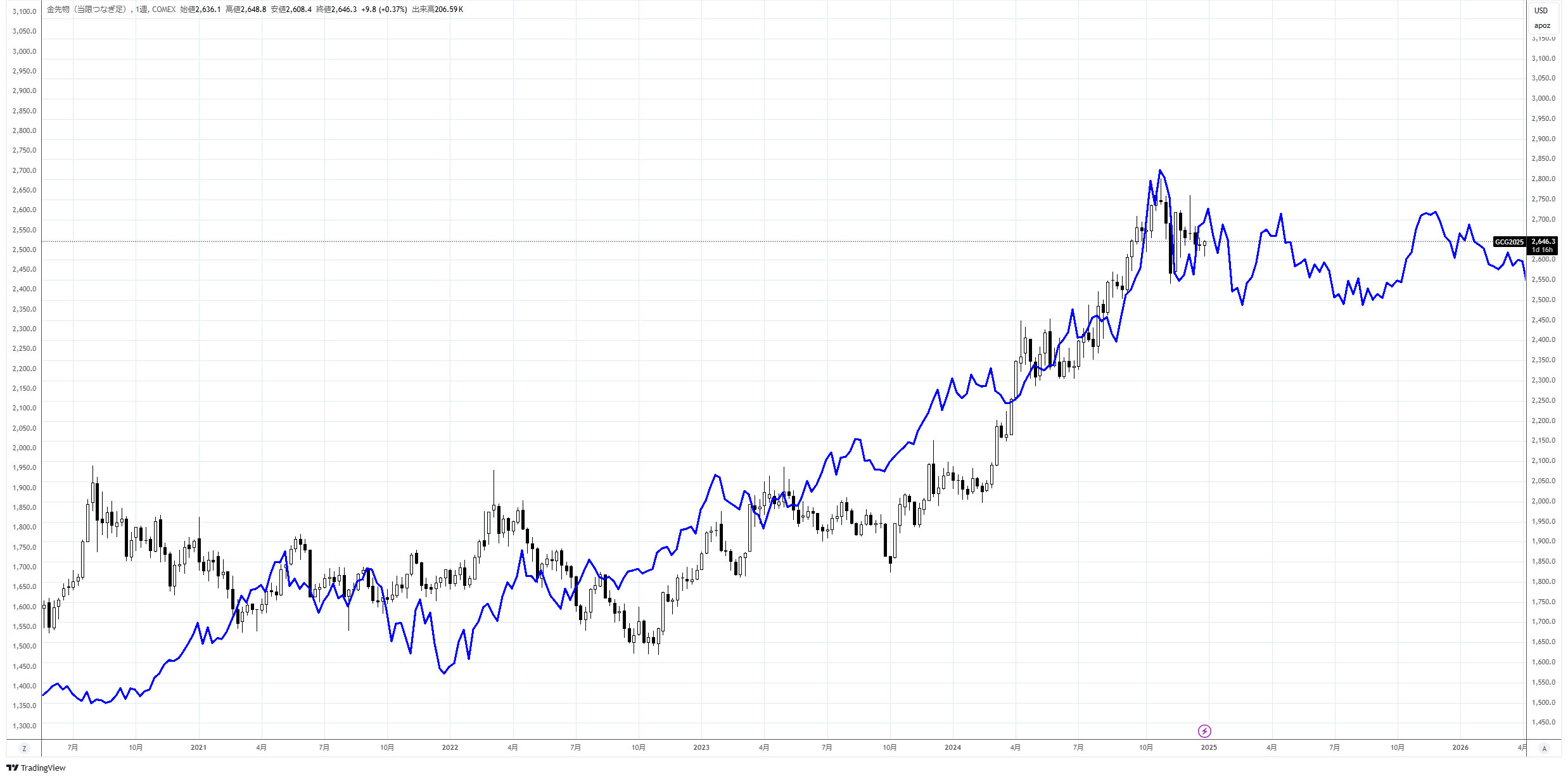 明けましておめでとうございます。 2024年はゴールドが大きく上昇した年でした。少し遡ってみると2019~2020と2009~2011が同じく強い上昇期間でした。添付図は現在のチャートにこの2期間のチャートをそれぞれ重ねたものですが実によく似た動きをしており、興味深い検証結果になりました。