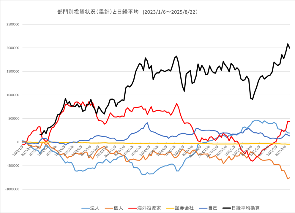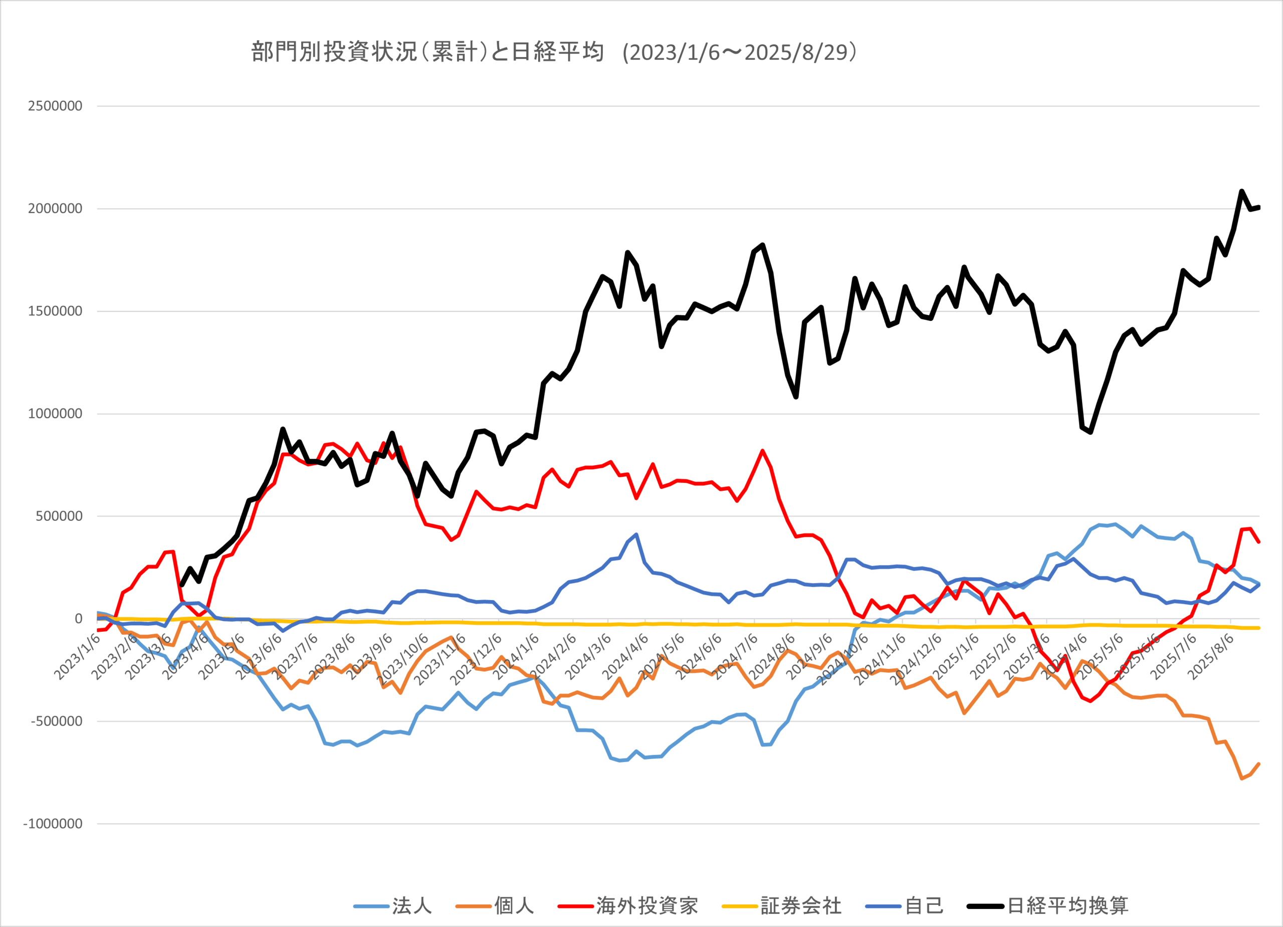 投資部門別…8月3週(7/28-8/22)この週は上昇一服の週でした。