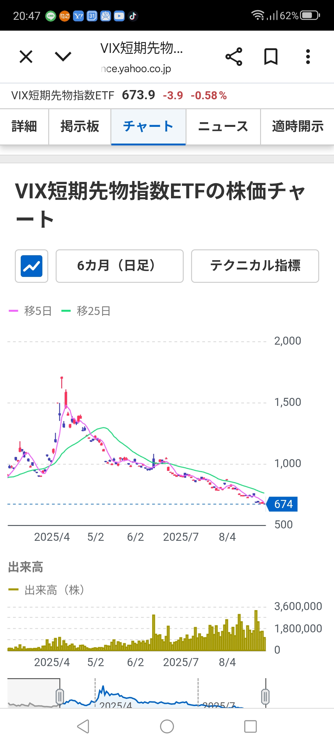銘柄コード318Aで呼ばれているVIX先物ETFを最近、購入しました。現在、マイナスです。